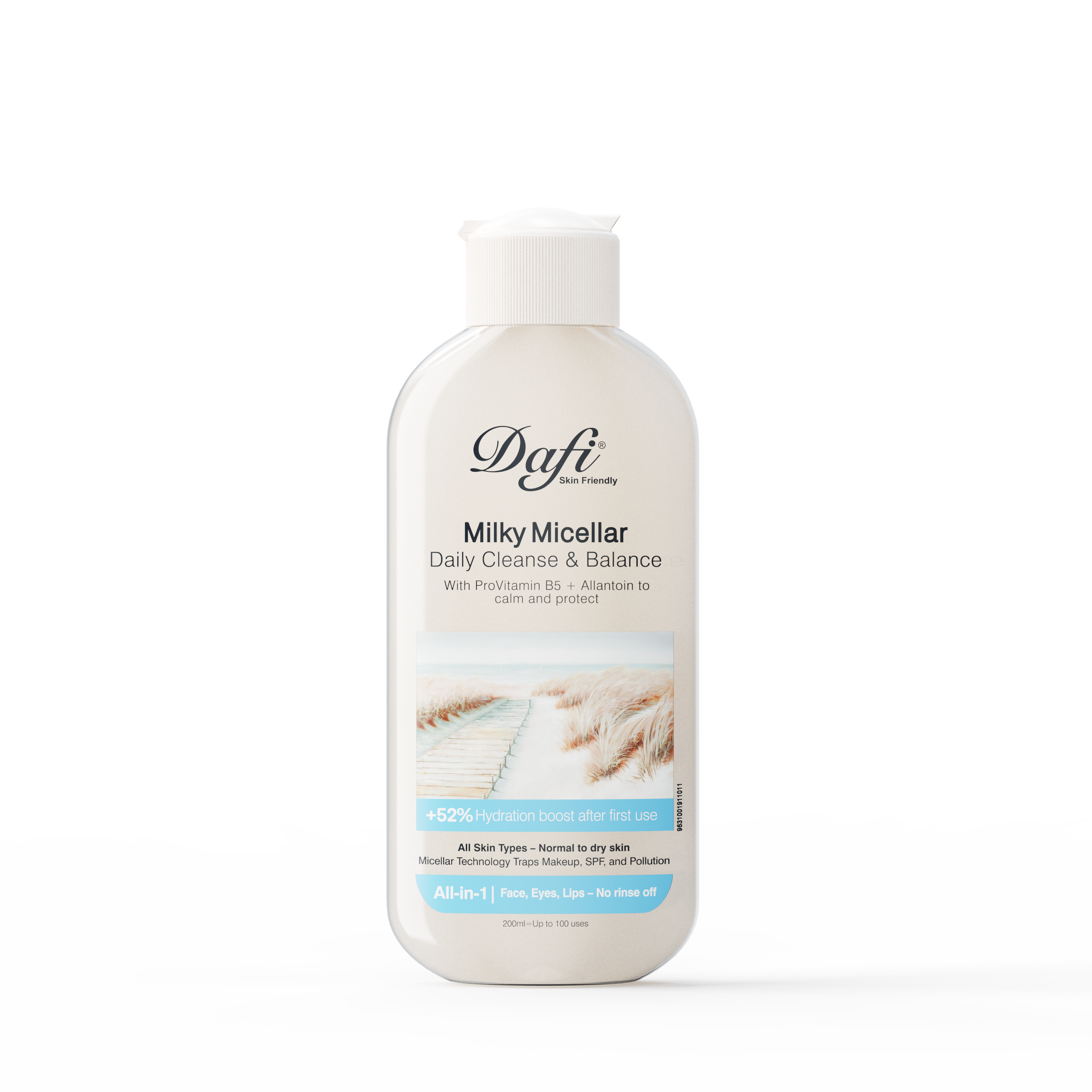 آنچه باعث تفاوت میسلار میلکی دافی مناسب پوست‌های خشک تا نرمال از سایر محصولات مشابه شده، ترکیب همزمان تکنولوژی میسلار واتر با فرمولاسیون شیری است. این ویژگی منحصر به فرد موجب شده تا هنگام پاک‌سازی، رطوبت طبیعی پوست حفظ شود و پوست دچار احساس خشکی یا کشیدگی نشود.